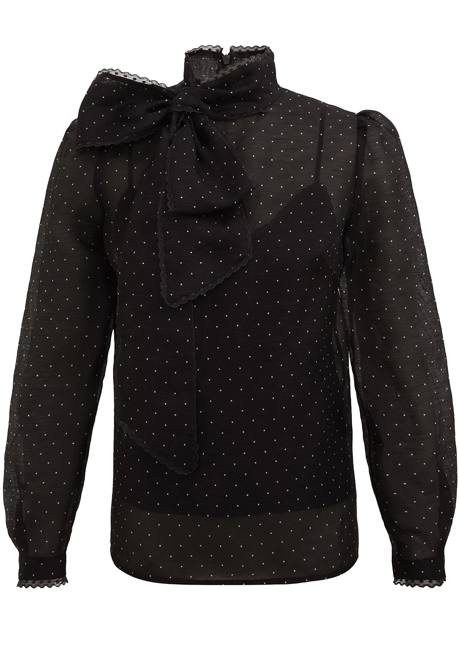 Роскошная блуза Zimmermann глубокого черного цвета со сплошным принтом в горох идеально сочетает в себе изысканность и стиль. Изготовленная из воздушной органзы на основе шелка и льна, эта блуза поражает тонкостью и легкостью материала. Объемные рукава придают образу выразительность и современность, а воротник с кокетливым бантом добавляет женственности и элегантности. Идеальный вариант для особых случаев или стильного повседневного образа, блуза легко комбинируется с различными элементами гардероба. Она станет вашим незаменимым помощником в создании запоминающегося и утонченного наряда.