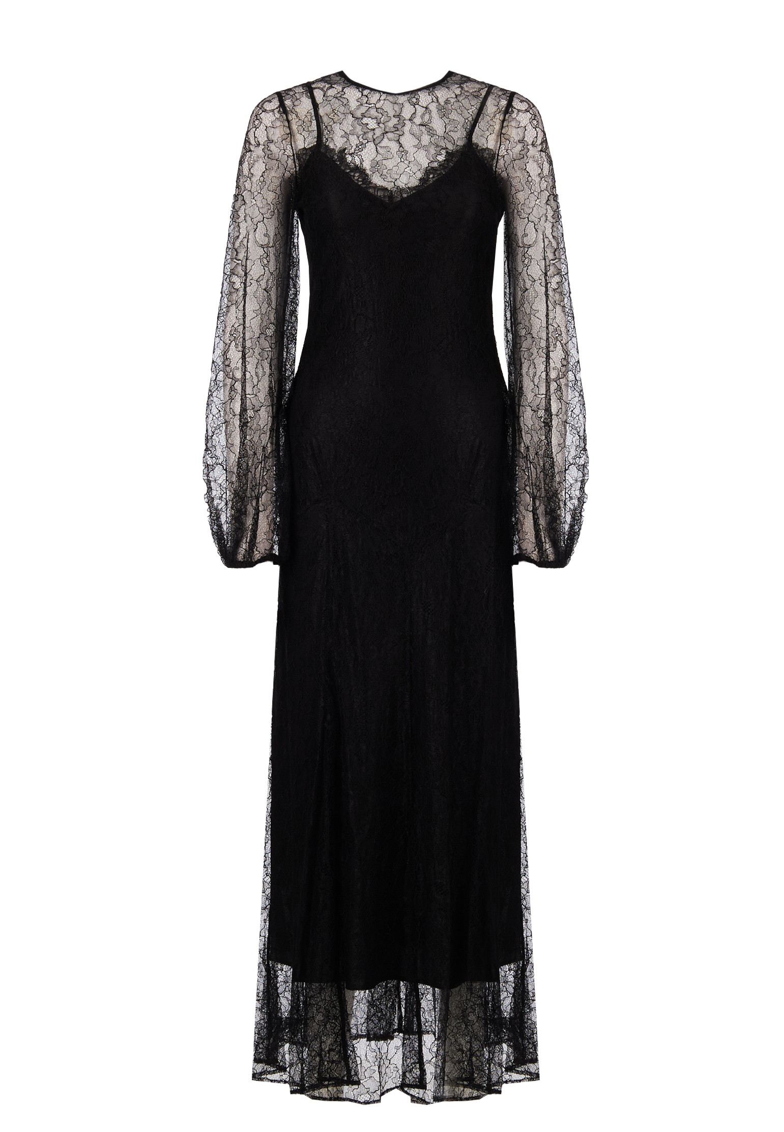 Это черное длинное платье от Twinset Milano — воплощение утонченной элегантности и загадочности. Выполненное из полупрозрачного кружева с абстрактным узором на основе вискозы, оно привлекает внимание своим изысканным видом. Подкладка из непрозрачной черной ткани на бретельках украшена кружевом по линии груди, добавляя романтизма и делая акцент на женственности. Длинные объемные рукава не только создают эффектный силуэт, но и придают модели комфорт. Особое внимание стоит уделить кружевному подолу, который придает образу легкость и загадочность. Это платье, идеально подходящее для особых случаев и вечерних мероприятий, подчеркнет вашу харизму и изысканный вкус, гарантируя, что вы будете в центре внимания.