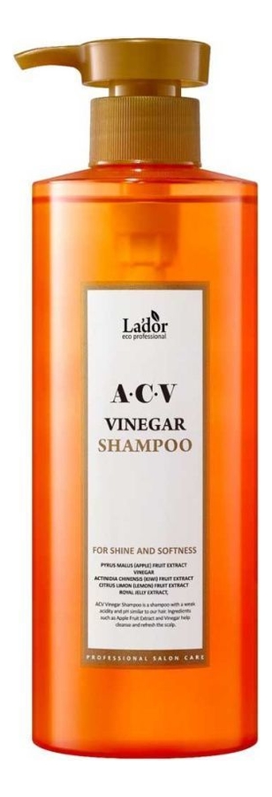 Шампунь для волос с яблочным уксусом ACV Apple Vinergar Shampoo южнокорейской компании La`dor глубоко очищает локоны и кожу головы любого типа. Нежная текстура легко наносится, хорошо пенится, быстро и тщательно удаляет с поверхности прядей и кожи остатки укладки и ороговевших клеток, жирность, пыль, неприятный запах и другие загрязнения, быстро смывается .