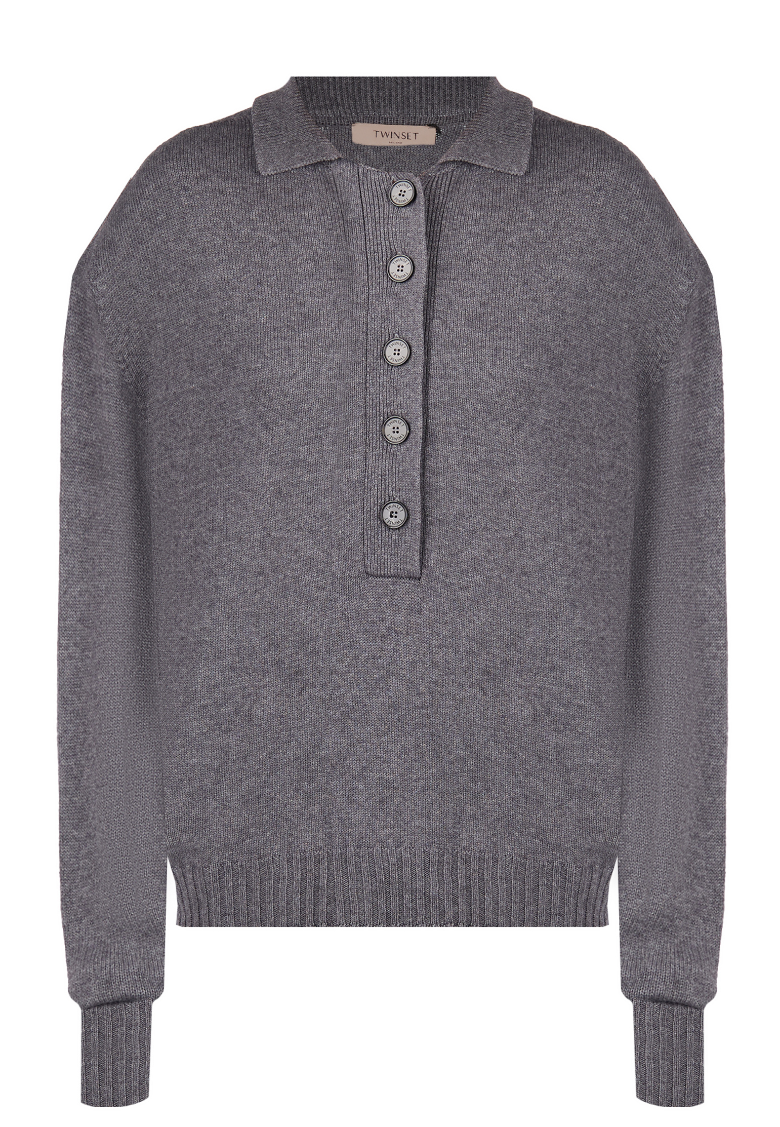 Джемпер с воротником-поло от Twinset Milano — это универсальный элемент гардероба, который легко комбинируется с брюками, юбками и джинсами. Лаконичная модель отличается элегантностью и продуманным дизайном, подчеркнутым пуговичной планкой. Изделие выполнено в стильном платиново-сером цвете, который добавляет изысканности и подходит для различных образов. Джемпер изготовлен из смесовой пряжи, в состав которой входят волокна шерсти и хлопка. Это делает его мягким, приятным к телу и, одновременно, теплым, что особенно ценно в прохладное время года. Такая модель станет отличной базой для создания стильных и уютных комплектов, отражая качество и стиль бренда Twinset Milano.