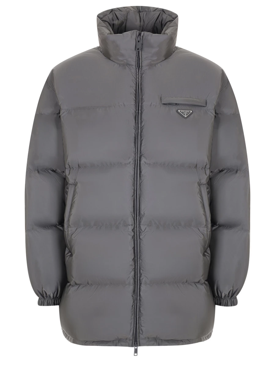 -Серый стеганый пуховик от PRADA.