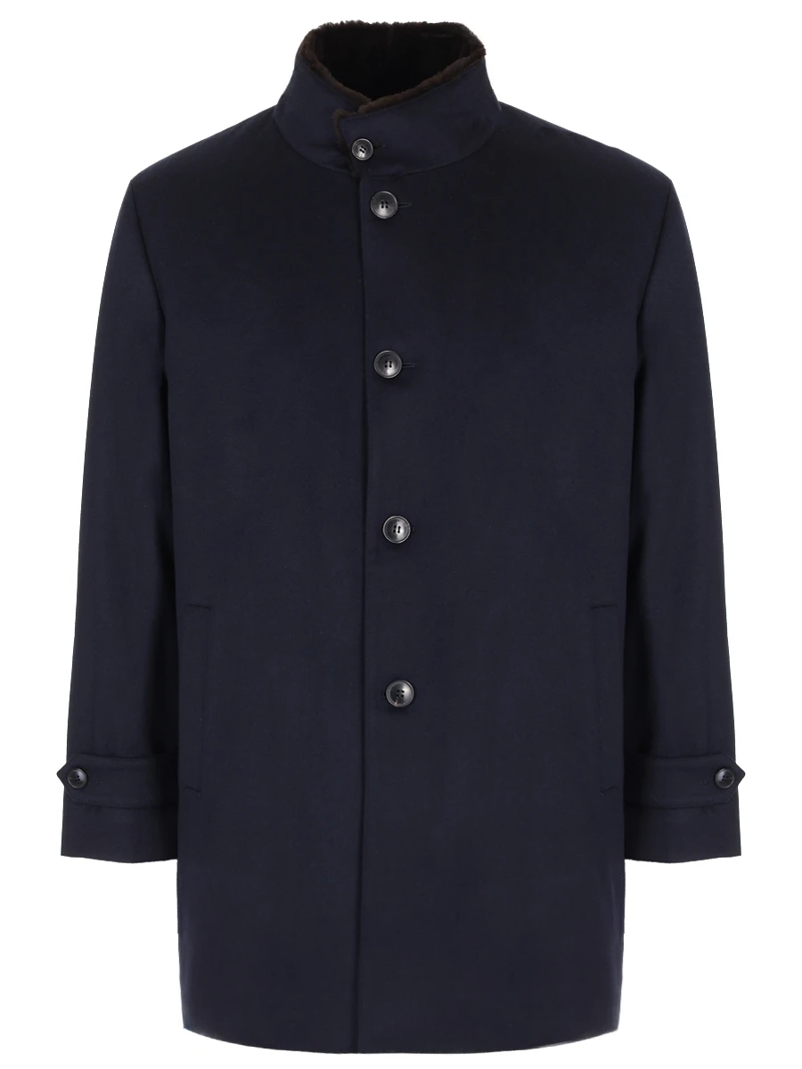 -Синее утепленное пальто из кашемира от MANZONI24.