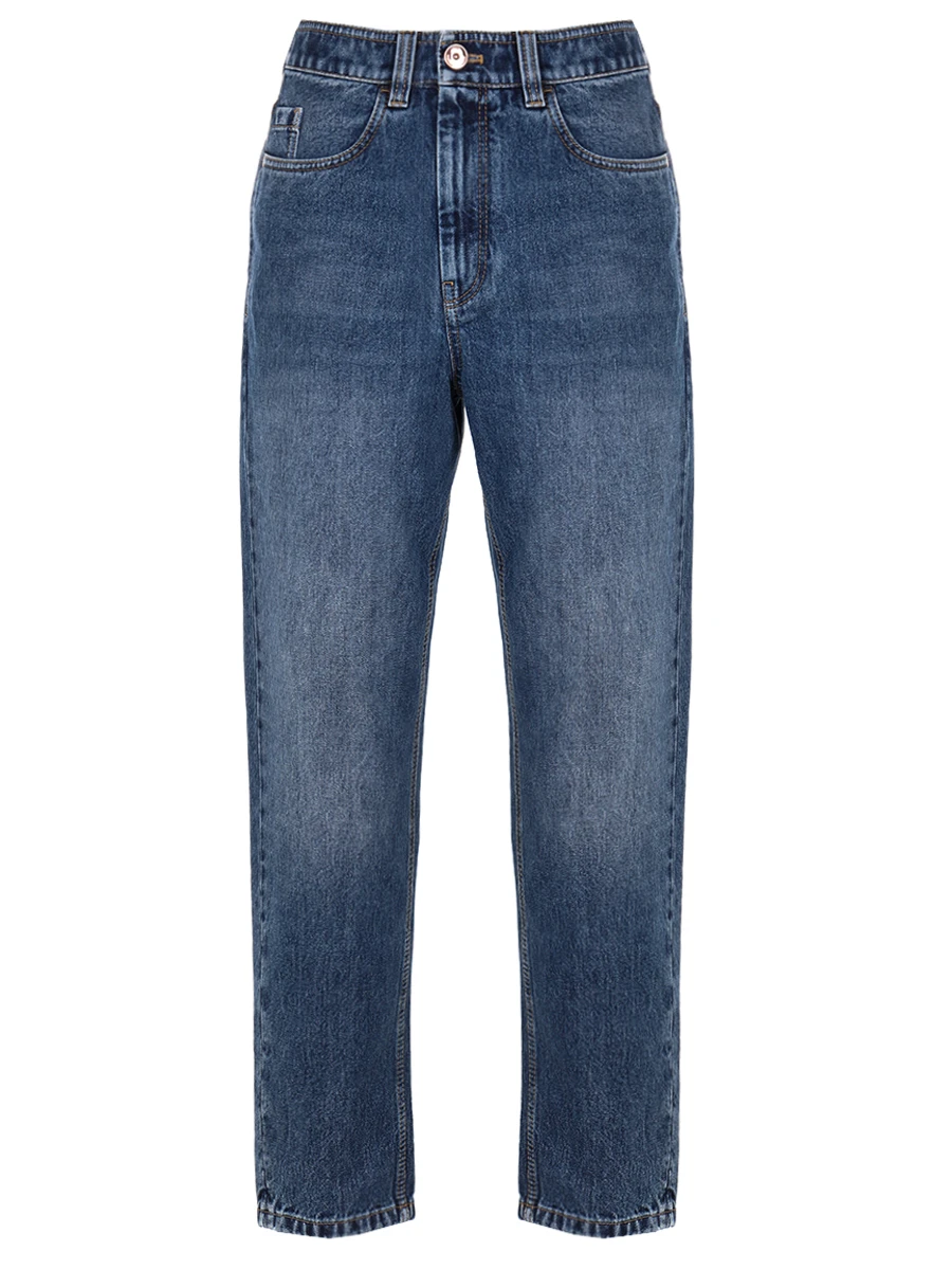 -Синие укороченные джинсы из выбеленного хлопка от BRUNELLO CUCINELLI.