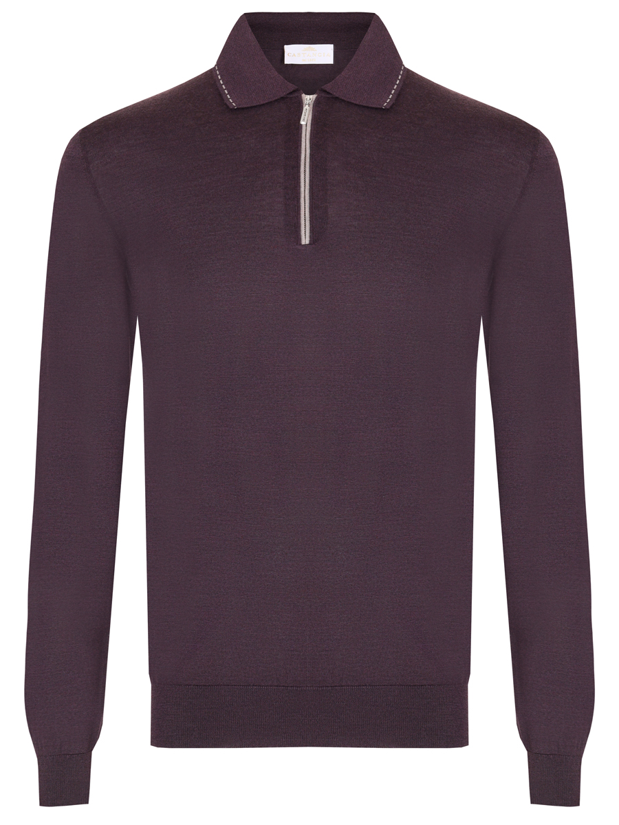 -Бордовое трикотажное поло из мягкого смесового кашемира от CASTANGIA.