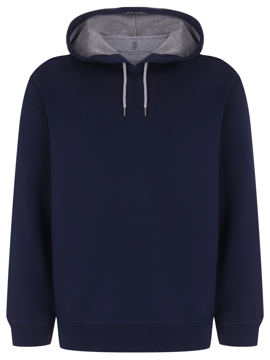 -Темно-синее худи из мягкого смесового хлопка от BRUNELLO CUCINELLI.