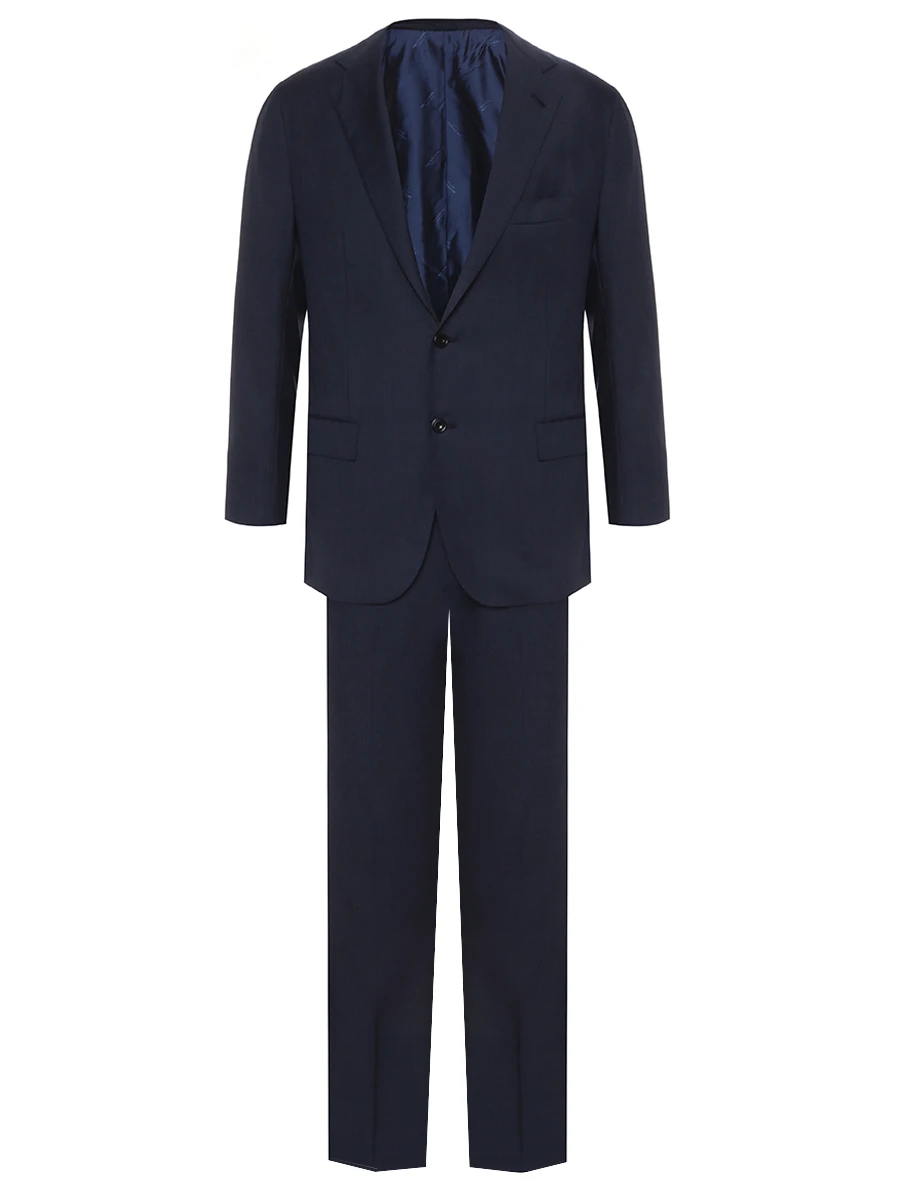 -Темно-синий классический костюм из тонкой шерсти от KITON.