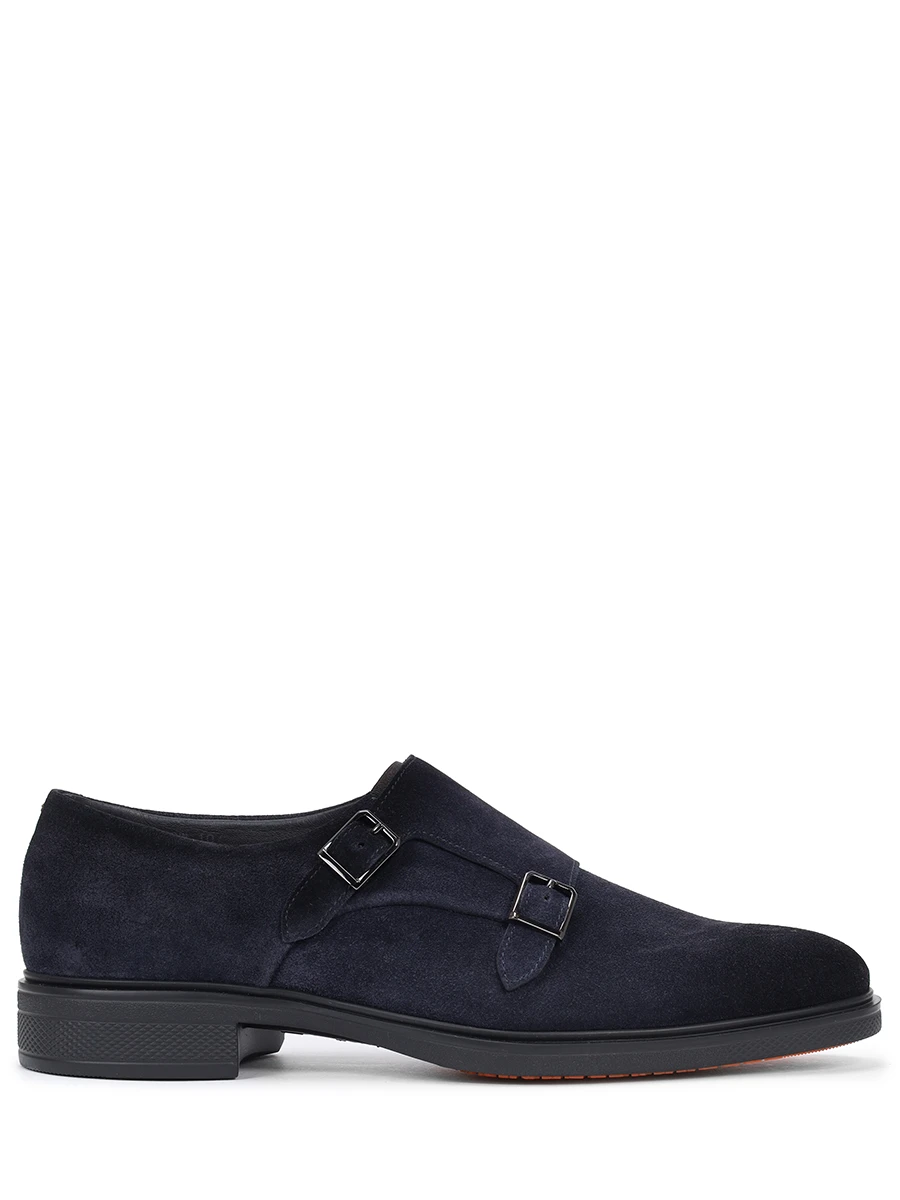 -Модель с вытянутым округлым мысом, широким поперечным ремешком с пряжками, толстой резиновой подошвой и низким каблуком, внутренней отделкой из натуральной кожи.