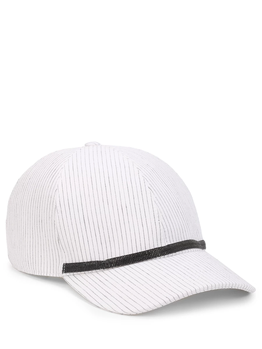-Белая в полоску кепка купажированного состава от BRUNELLO CUCINELLI.