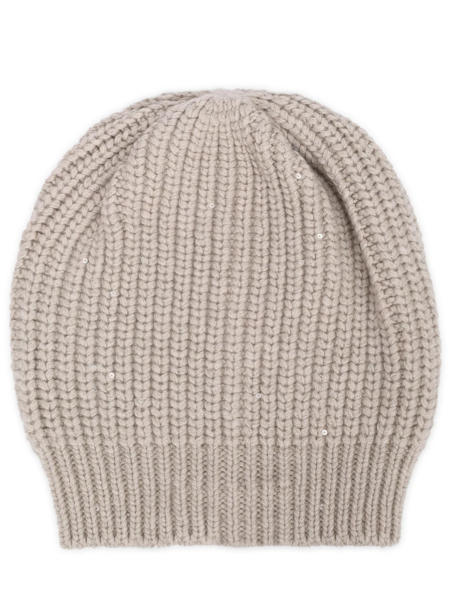 -Бежевая вязаная шапка из кашемира с добавлением шелка Diamante от BRUNELLO CUCINELLI.