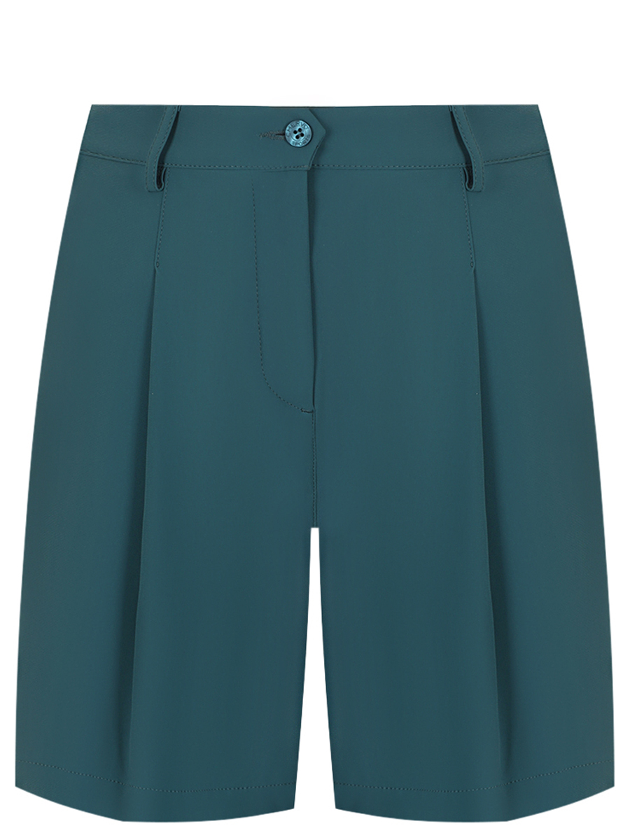 -Модель прямого кроя с высокой посадкой, частично эластичным поясом со шлевками, защипами спереди, прорезными карманами, застежкой на молнию и пуговицу, вышитым логотипом бренда сзади.