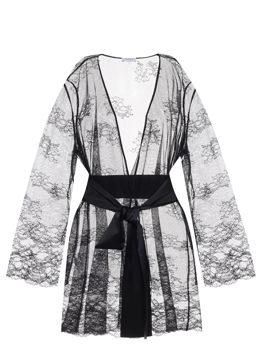 -Черный халат из прозрачного кружева купажированного состава от C.ALLA.