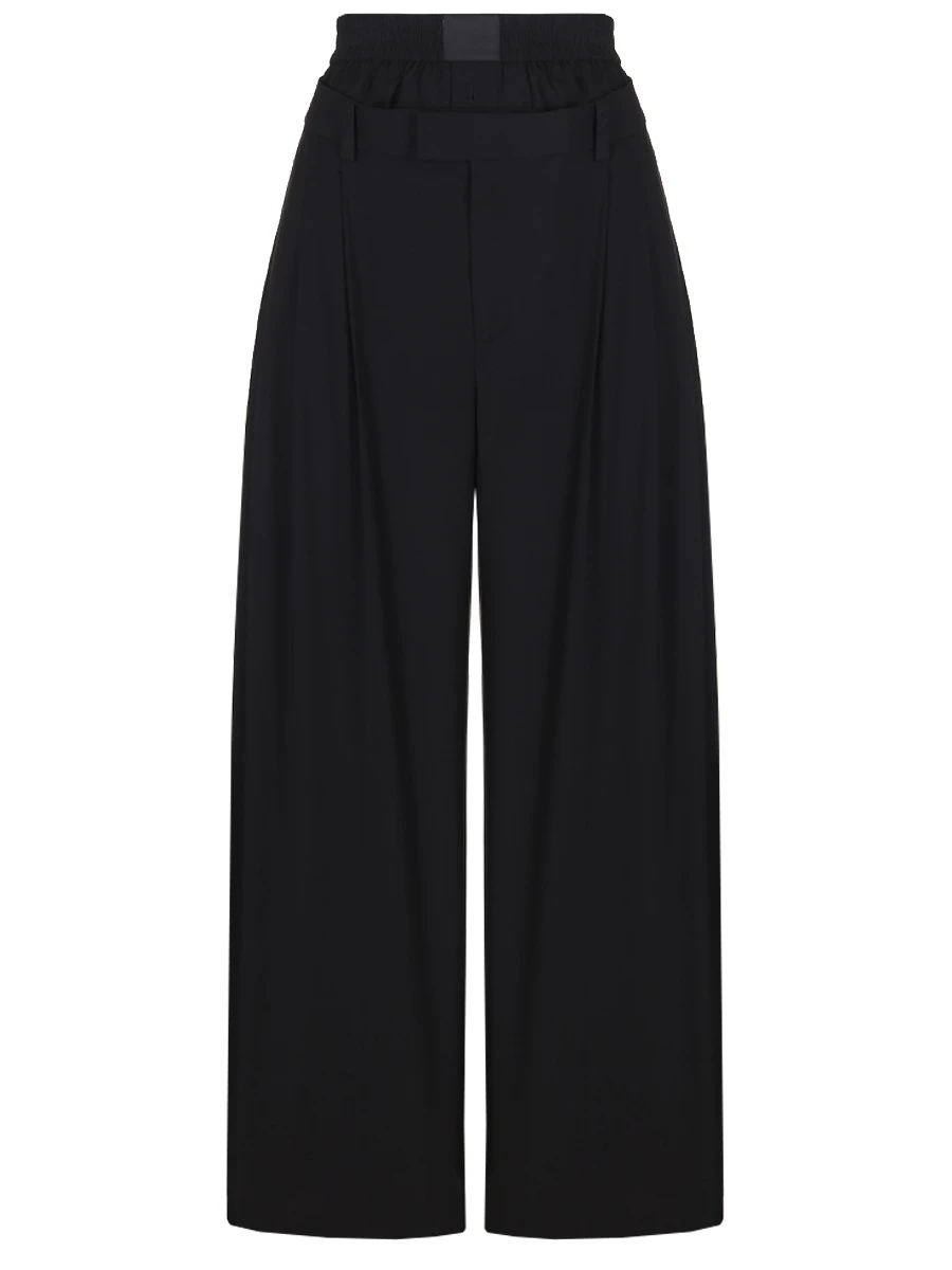 -Брюки дополнены брендированной вставкой-поясом, создающей иллюзию многослойности.