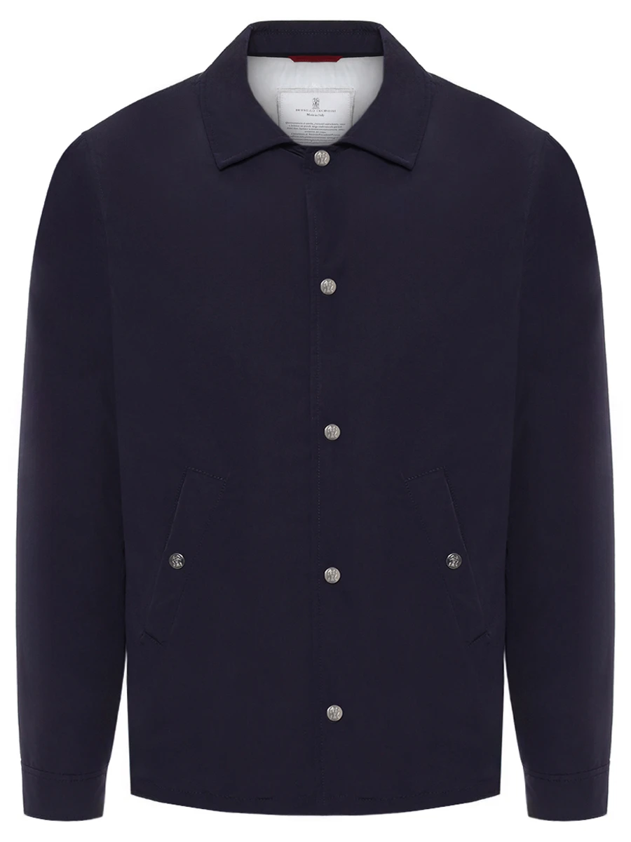 -Темно-синяя куртка из влагостойкой ткани купажированного состава от BRUNELLO CUCINELLI.