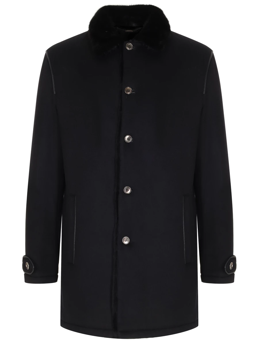 -Модель прямого кроя с длинными рукавами, патами на пуговицах, прорезными карманами, отложным воротником с отделкой натуральным мехом, застежкой на пуговицы.