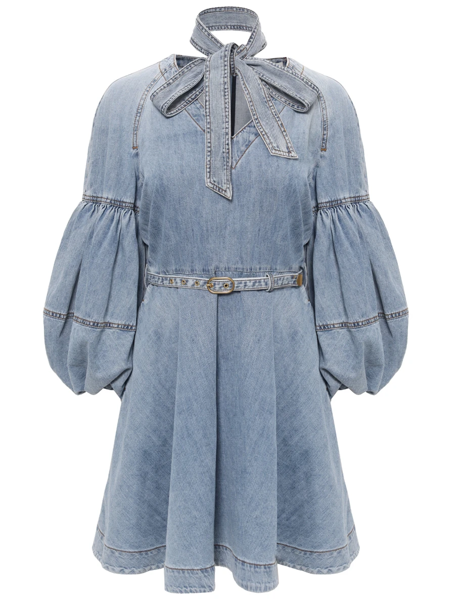 -Синее платье из хлопкового денима от ZIMMERMANN.