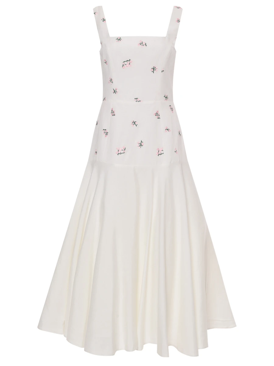 -Белое платье-миди купажированного состава с нежной цветочной вышивкой от ROSEVILLE.