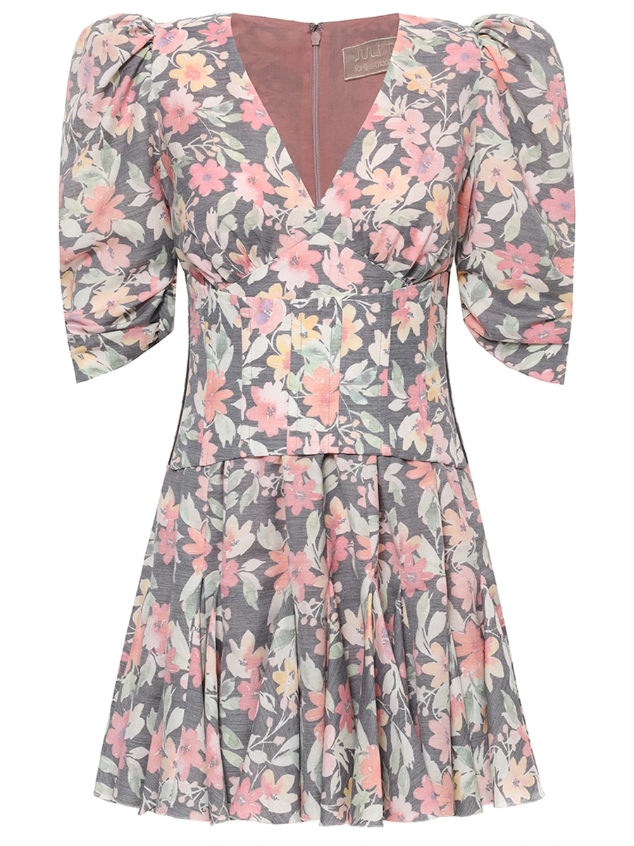 -Серое мини-платье с цветочным принтом купажированного состава от JULI TOO.