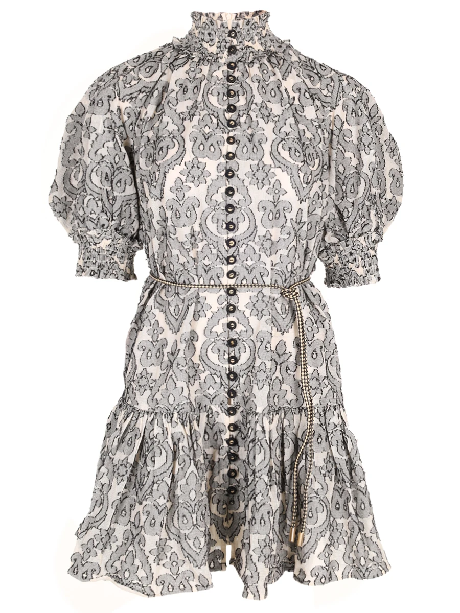 -Серое мини-платье из легкого хлопка от ZIMMERMANN.