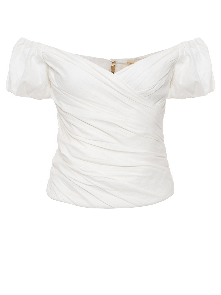 -Белый топ с драпировками из легкого дышащего смесового льна от CULT GAIA.