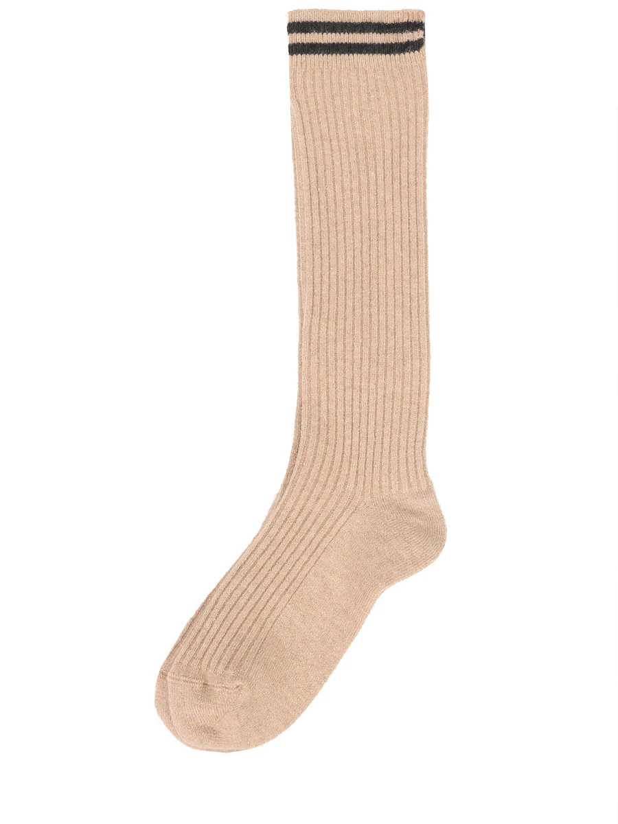 -Бежевые длинные носки из микса кашемира и вискозы от BRUNELLO CUCINELLI.