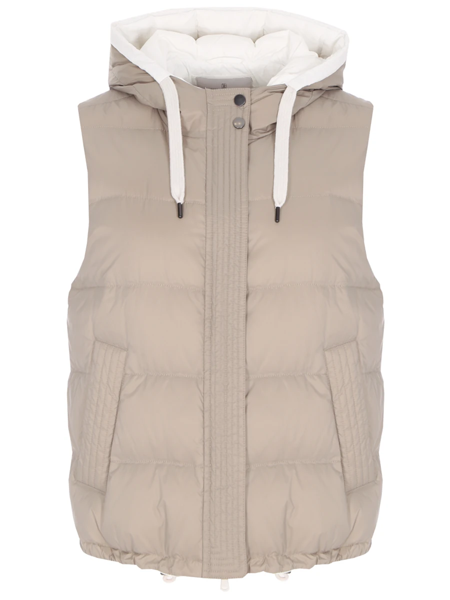 -Бежевый стеганый жилет с натуральным пуховым наполнителем от BRUNELLO CUCINELLI.