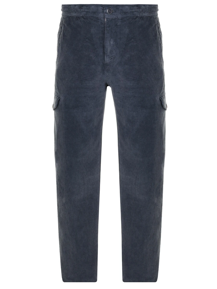 -Синие брюки-карго из фактурного вельвета на основе хлопка от KITON.
