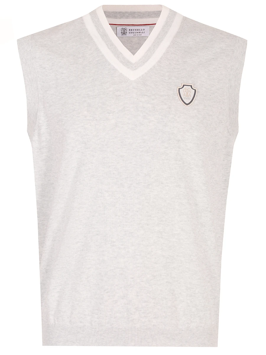 -Серый трикотажный жилет из мягкого хлопка от BRUNELLO CUCINELLI.