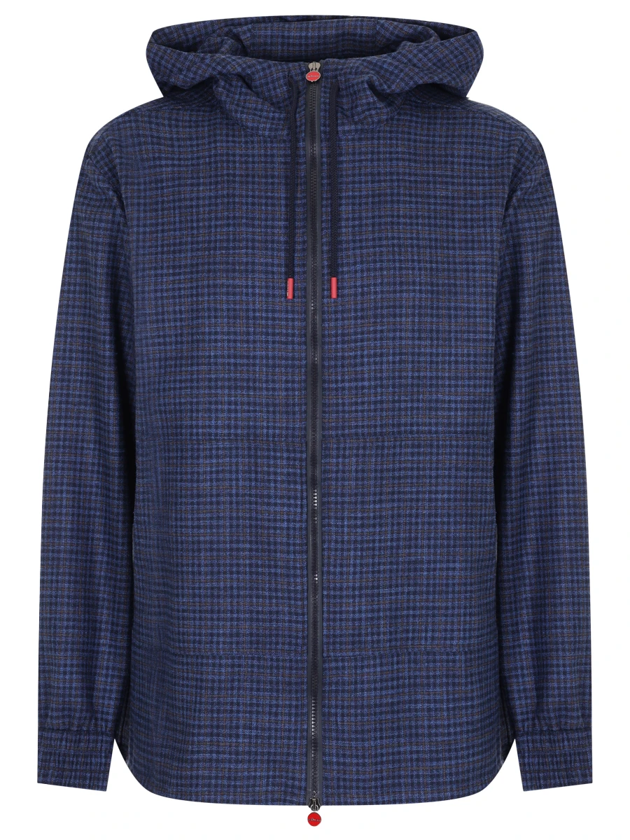 -Синяя клетчатая рубашка из смесовой шерсти от KITON.
