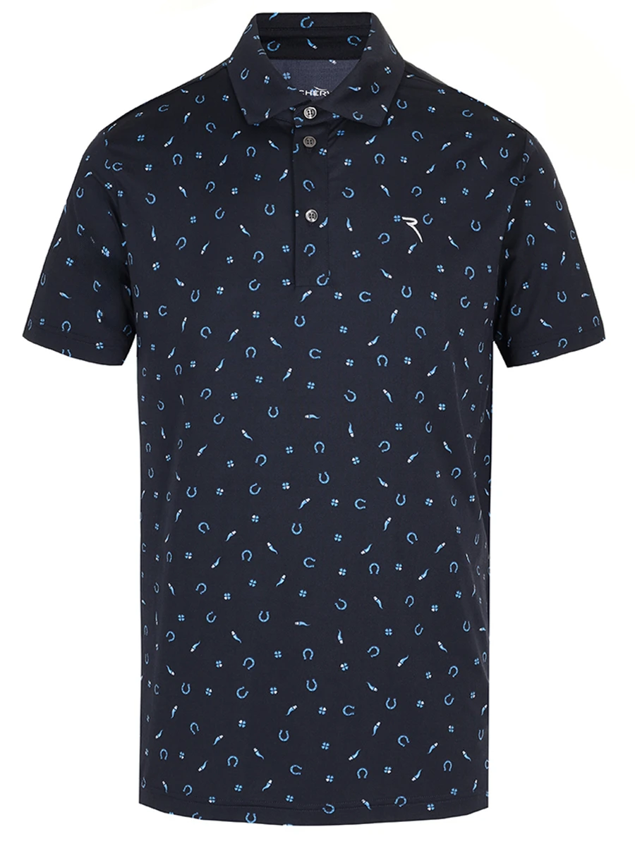 -Темно-синее с принтом поло из стрейч-ткани купажированного состава от CHERVO.