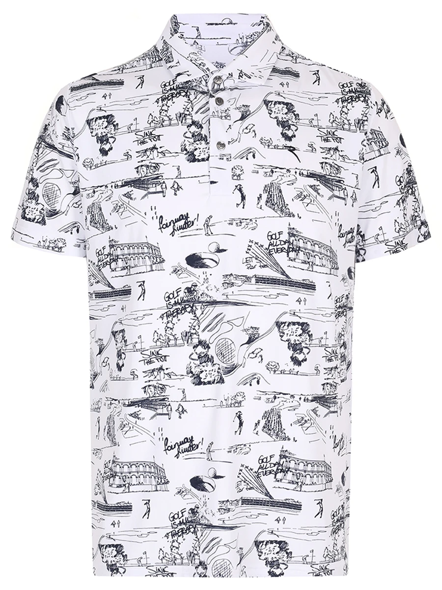-Белое с принтом поло из стрейч-ткани купажированного состава от CHERVO.