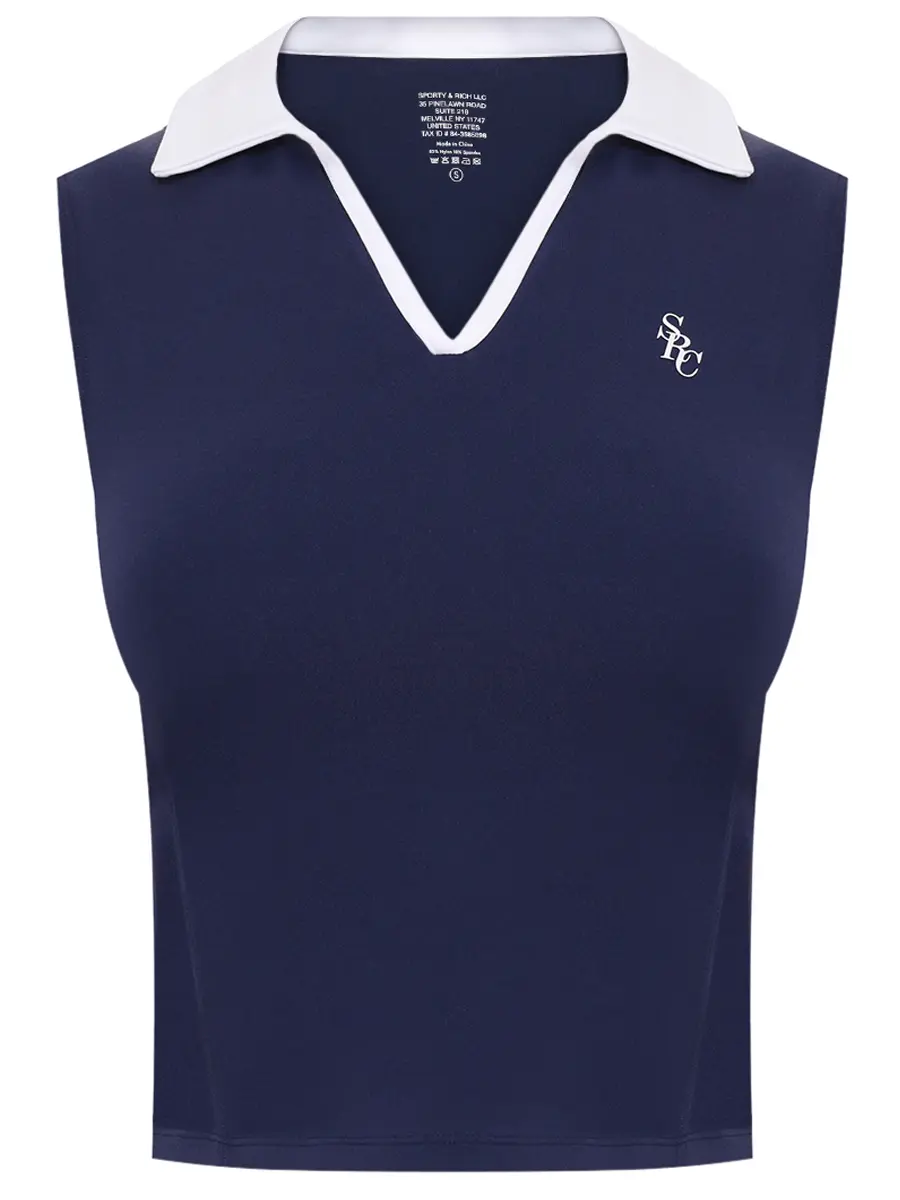 -Темно-синее спортивное поло купажированного состава от SPORTY&RICH.