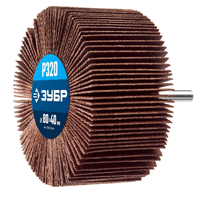 Круг шлифовальный Зубр "МАСТЕР" , веерный лепестковый, на шпильке, тип КЛО, зерно-электрокорунд нормальный, P320, 40х80мм 36604-320_z01