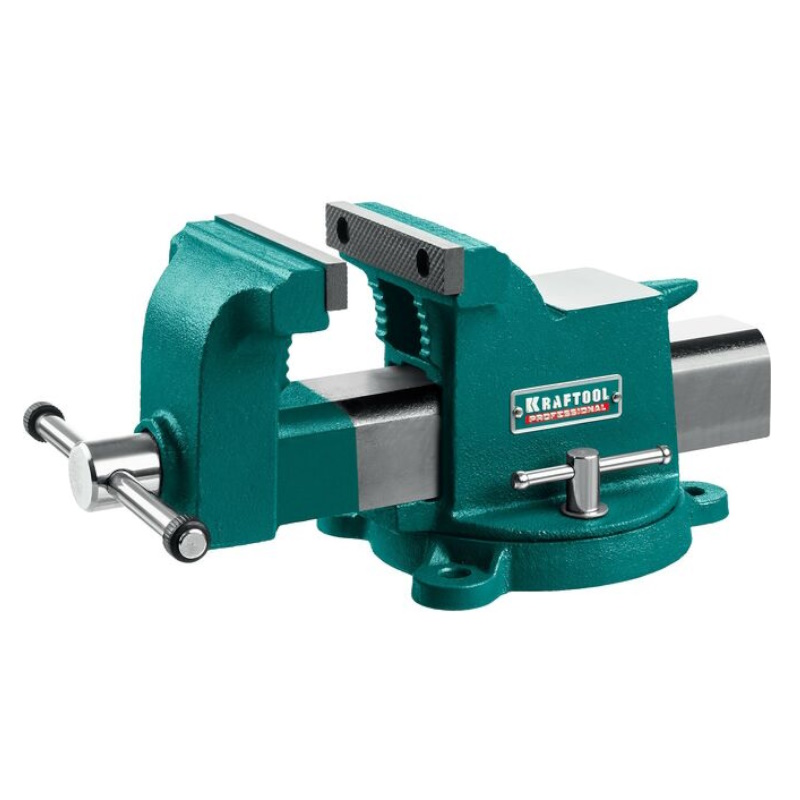 Тиски стальные слесарные Kraftool STEEL , 100 мм - профессиональный инструмент из высококачественной стали и возможностью поворота основания на 360 градусов. Применяется для зажима различных предметов или их отдельных составных элементов.Преимущества Корпус тисков изготовлен из высококачественной стали На рабочую поверхность губок нанесены рифления для надежного и безопасного крепления деталей Поворотное основание позволяет перемещать корпус тисков в горизонтальной плоскости на угол от 0 до 360 градусов Наличие наковальня с рогом на корпусе тисков для выполнения слесарных работ Установка тисков на столе осуществляется при помощи винтов и гаек для чего в основании предусмотрены отверстия