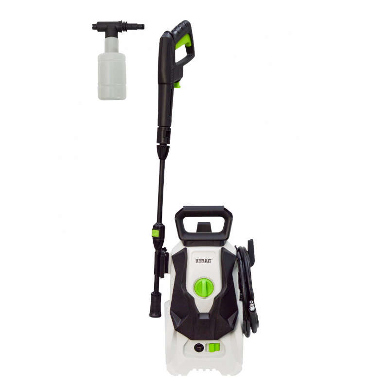 Мойка высокого давления Brait 16.01.012.029, 1400 Вт; 80-110 бар, возможность всасывания воды, 5,5-6,5 л/м, бачок, шланг HPW 1400C