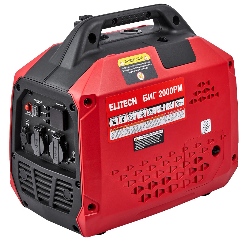 Генератор бензиновый инверторный Elitech 210596, 4-тактный, макс.2кВт/ном.1.8кВт, 230В-7.8А/12В-8А БИГ 2000РМ