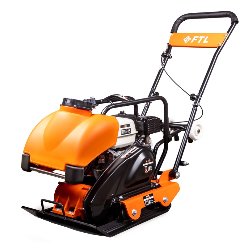 Виброплита FTL (8774) представляет собой бензиновую прямоходную машину с двигателем Honda GX160 для уплотнения песка, рассыпчатых грунтов, асфальта и суглинков при строительстве дорог, тротуаров и площадок. Центробежная сила 13,5 кН и плита 560x475 мм обеспечивают глубину уплотнения до 350 мм со скоростью 15-20 м/минПреимущества Надёжный двигатель Honda 4,8 л.с. с маслодатчиком и ресурсом свыше 1000 моточасов гарантирует автономность до 2,58 ч на баке 3,1 л при расходе 1,2 л/ч Съёмный бак для воды 12 л со разбрызгивателем предотвращает налипание смеси на асфальте, а интегрированные колёса и точка подъёма упрощают транспортировку Виброгасящая ручка снижает нагрузку на оператора, защитный кожух оберегает ремень, а вес обеспечивает стабильность без прыжков