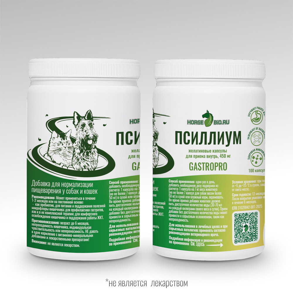 ФАРМПРОТЕКТ Псиллиум GastroPro Кормовая добавка для нормализации пищеварения у кошек и собак, 100 капсул, 450 мг