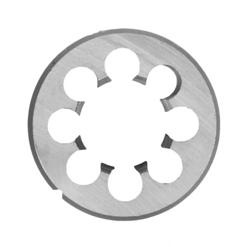 Плашка метрическая Hortz предназначена для нарезания внешней метрической резьбы на металлических заготовках (болтах, шпильках, трубах и т. п.)Преимущества Плашка изготовлена по действующему государственному стандарту, что гарантирует точность геометрических параметров резьбы Инструментальная легированная сталь 9ХС обладает устойчивостью к износу при резании металла Конструкция плашки позволяет сформировать полную профильную резьбу за один проход, что ускоряет процесс обработки Плашка подходит для работы с нелегированными сталями и ряде случаев — с низкоуглеродистыми легированными сплавами