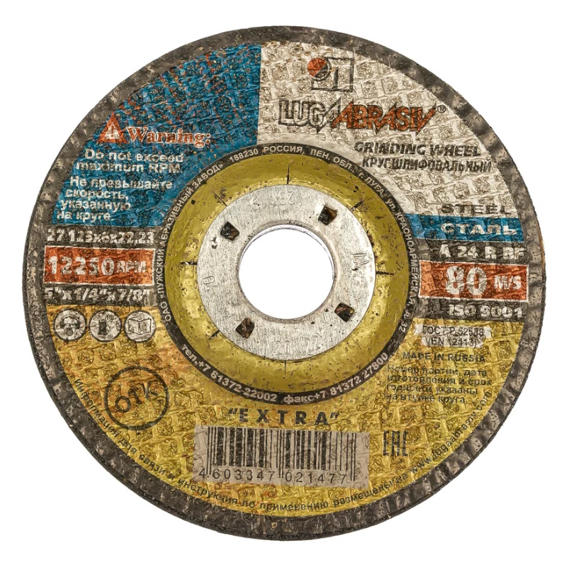 Диск абразивный шлифовальный по металлу Луга-Абразив Extra , 125 x 6.0 x 22мм, вогнутый 27 021-477