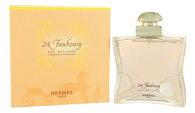 Hermes («Гермес. 24 Фобур О Деликат») это новый женский аромат, вышедший в свет в 2003 году. Он обладает необычайно легким, свежим запахом, который прекрасно подойдет для современной, женственной леди, которая любит солнечные, жизнерадостные ароматы. Выбирая Hermes Вы приобретаете прозрачный, легкий, сверкающий аромат.