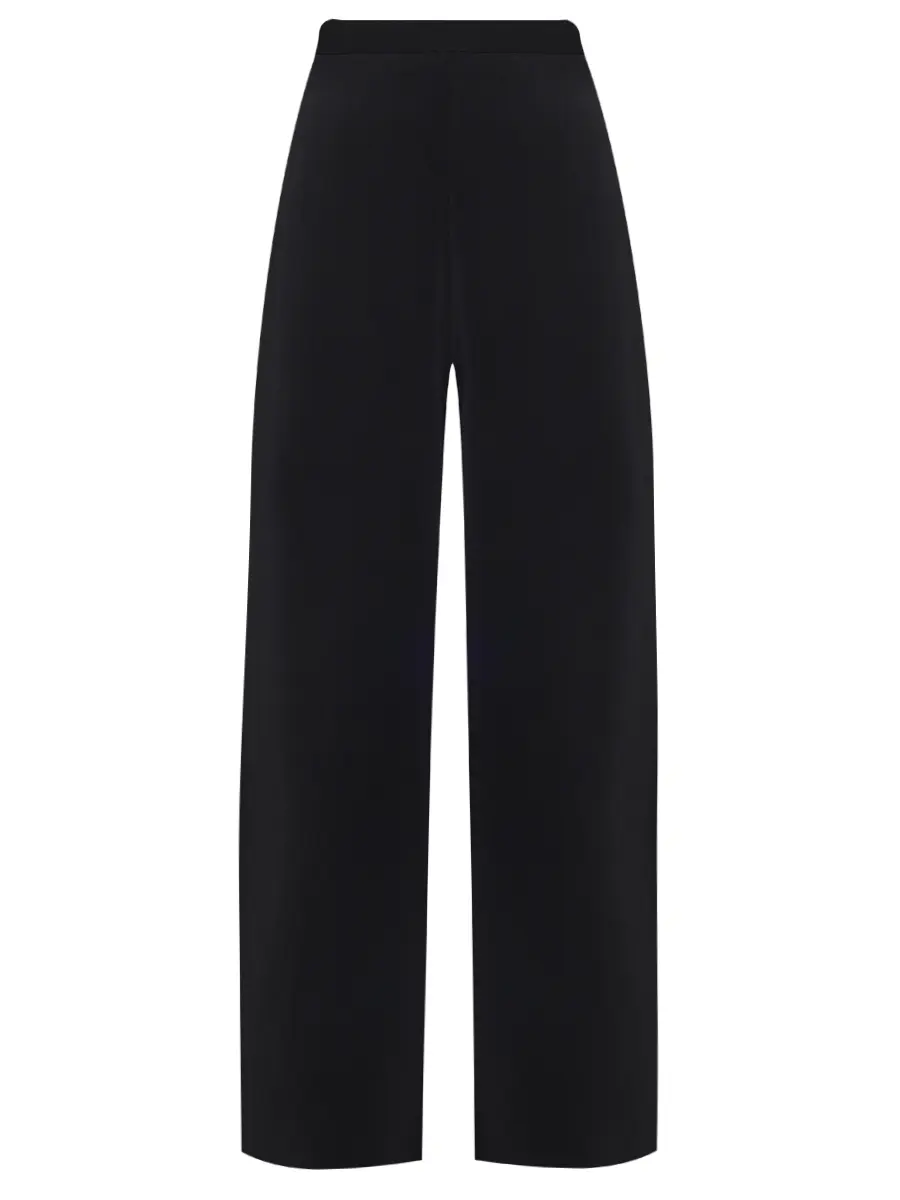 -Модель широкого кроя с высокой посадкой на талии, которую подчеркивает узкий пояс, застежкой на потайную молнию сбоку.