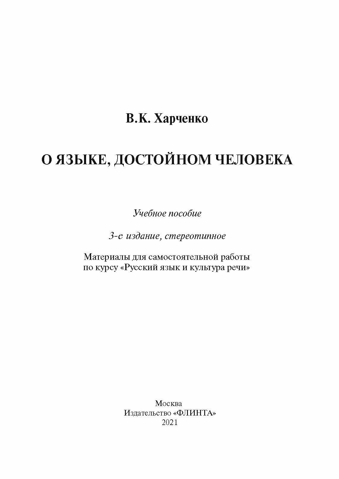 О языке, достойном человека. Учебное пособие; Флинта, 2010