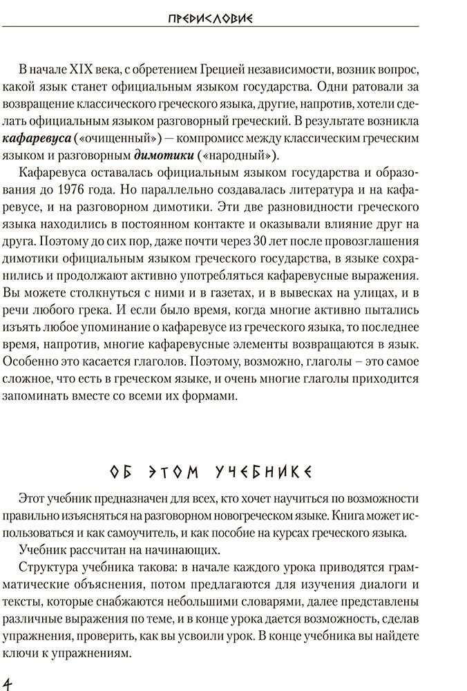Книга адресована всем, кто хочет научиться изъясняться на новогреческом языке. Она может использоваться как самоучитель, так и в качестве пособия на курсах греческого языка.