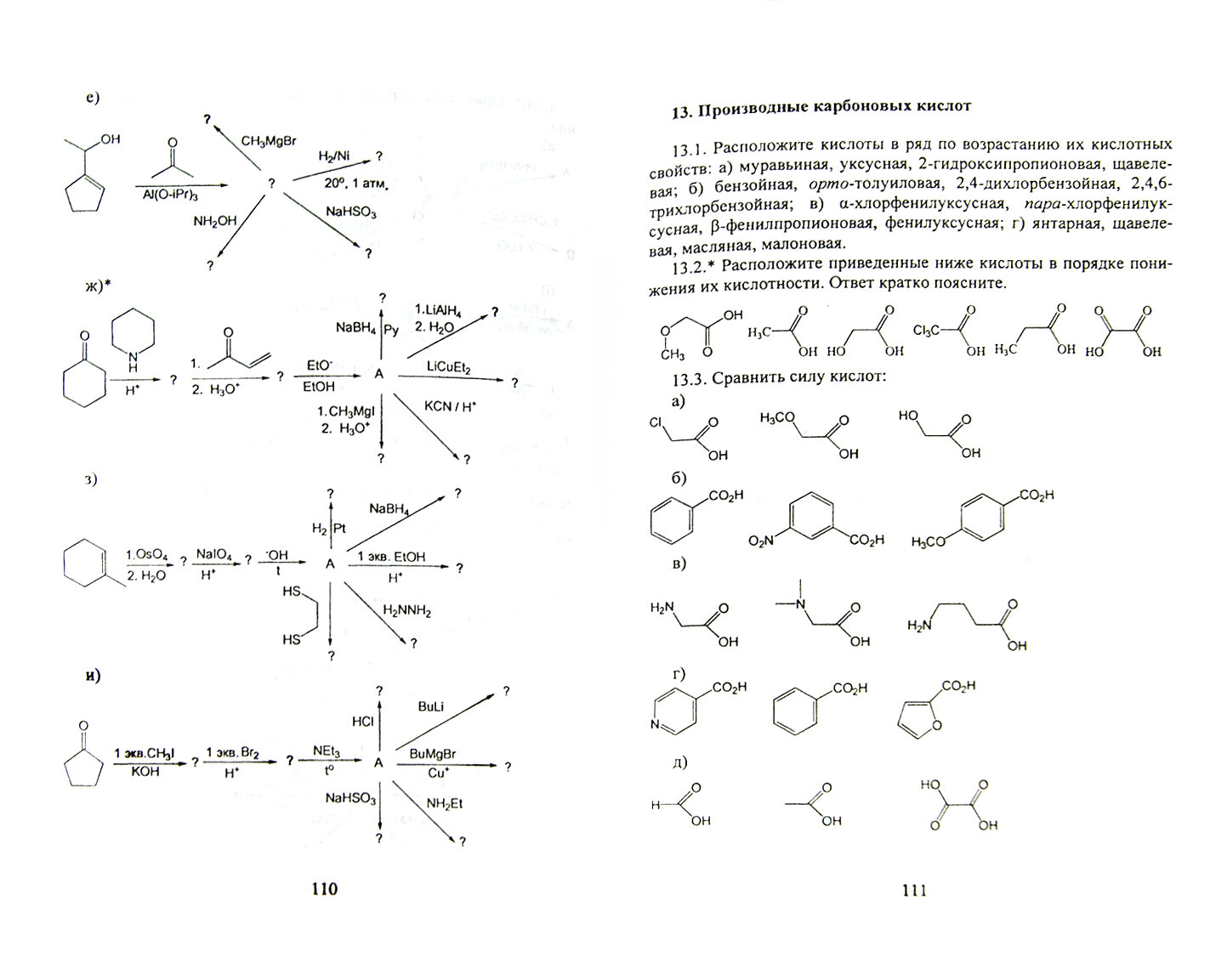 Один из наилучших задачников по органической химии. В задачнике содержится огромное (около 1000 задач!) количество самых разнообразных задач и упражнений - органические цепочки, синтез из простых вещество более сложных соединений. Имеются задачи на установление механизмов протекания органических реакций, основываясь на исходных соединений и на продуктах реакций. Присутствуют задачи повышенной сложности, а также примеры задач синтетического плана, которые можно давать на экзаменах по органической химии.