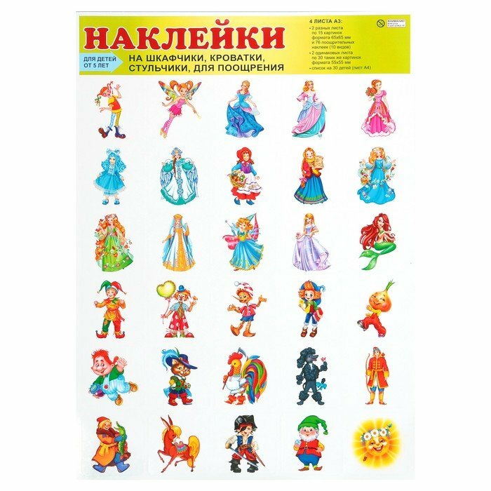 хорошие наклейки-детям в группе понравились-яркие и красочные. но: две наклейки не совпадают с картинками в таблице списка( хорошо, что детей как раз 28...но списки все равно надо будет делать другие...вот задумались, как же назвать каждую принцессу...