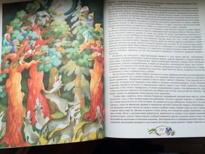 Красочные иллюстрации… это наверное главная причина по которой я купила ребенку эту книгу ))) книга в целом понравилась. Качественная печать, бумага. На мой взгляд рассчитана на детей, которые уже читают хорошо, это 10-12 лет и далее, или для взрослого. Мелкий текст для меня не минус, все зависит от того какие книги вы читали до этого. Для маленьких детей слишком сложный сюжет