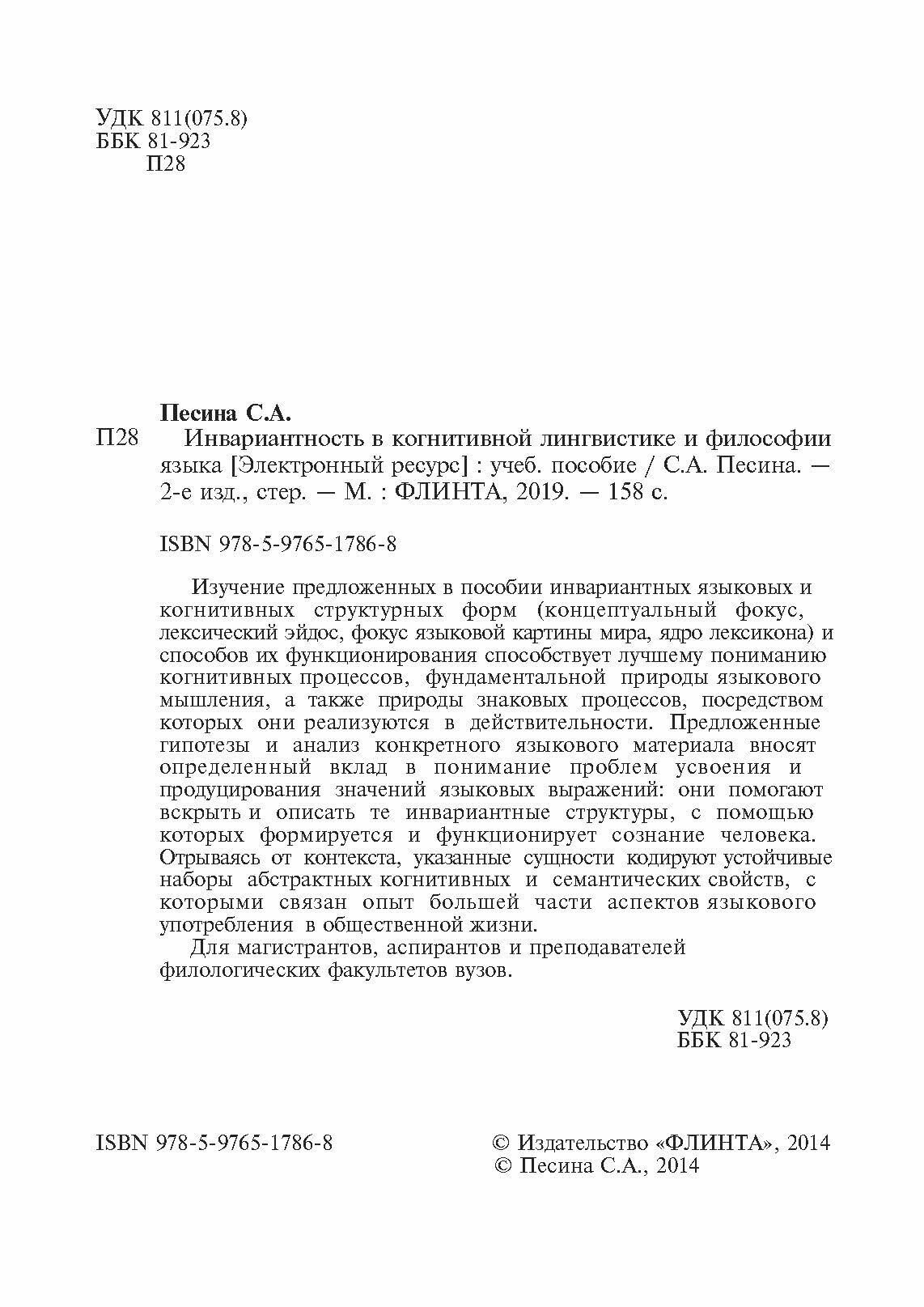 Инвариантиость в когнитивной лингвистике и философии языка. Учебное пособие; Флинта, 2023