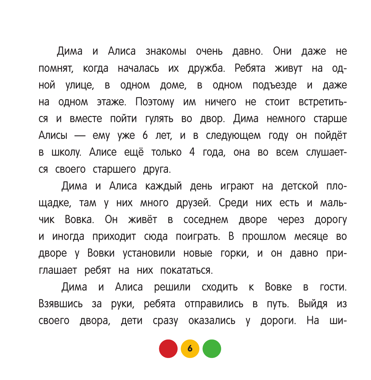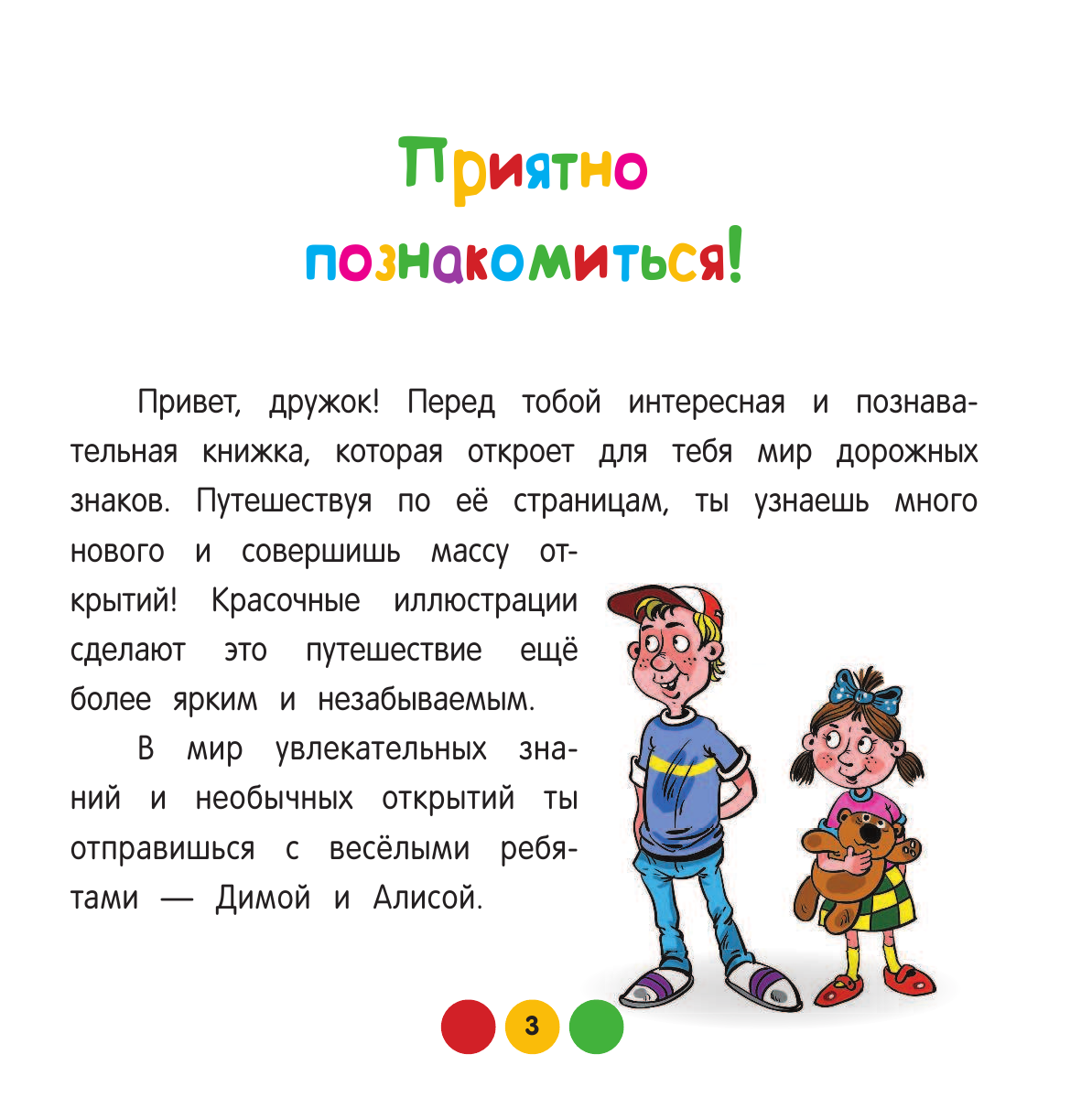 Вместе с героями Димой и Алисой ребенок узнает, как выглядят дорожные знаки, как правильно переходить дорогу, как вести себя на велосипедной дорожке, а также о дорожных работах и многом-многом другом.