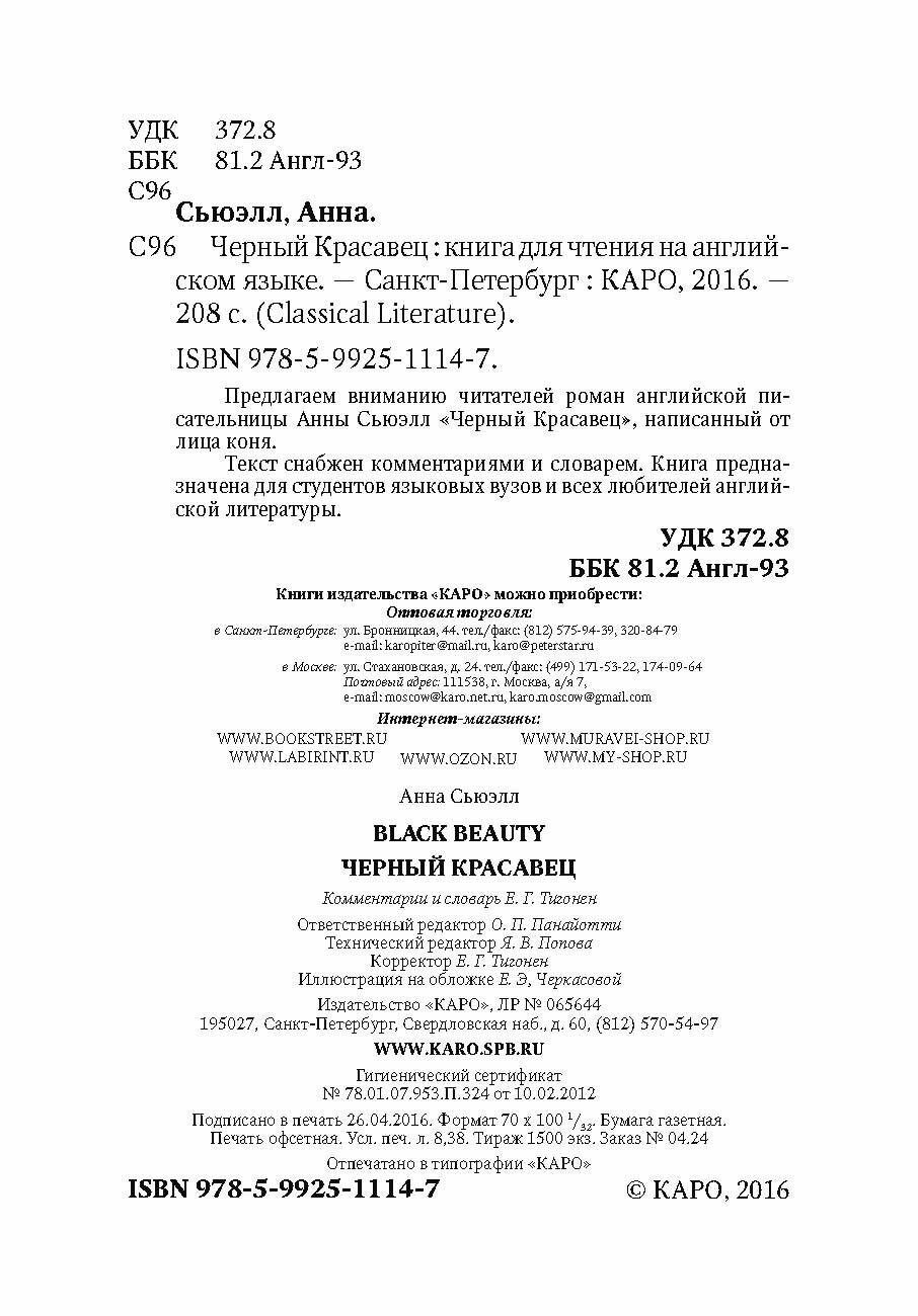 Черный Красавец (Анна Сьюэлл); КАРО, 2016