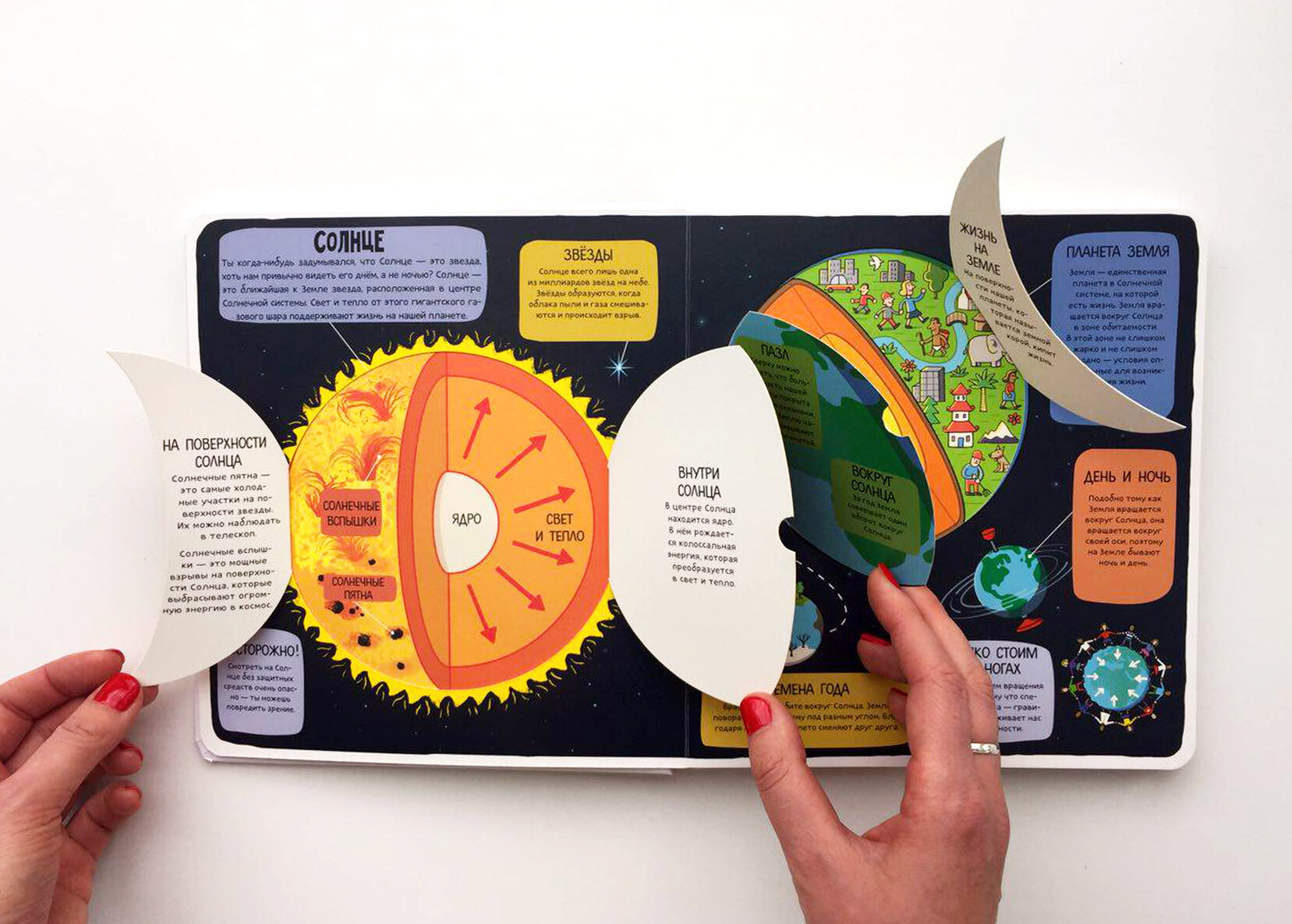 Весь заказ собирала ради этой книги. Книга очень красочная и красивая, напечатана качественно. Сыну тоже понравилась, ему 4,3. Пока конечно больше рассматривает картинки и открывает окошки.